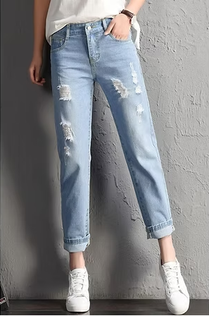Mid Waist Boyfriend Big Ripped Hole Jeans Casual High